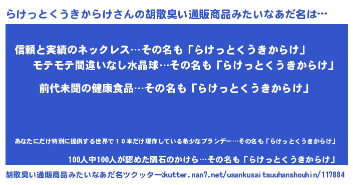 | ヘコむあだ名 | 『らけっとくうきからけ(笑)』『らけっぺ』 |