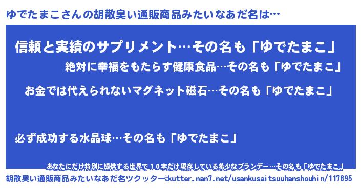 | ヘコむあだ名 | 『ゆでお』『ゆでたまこ(小並感)』 |