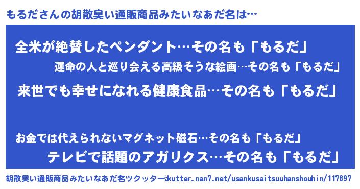 | ヘコむあだ名 | 『もるだ(笑)』『もるを』『牛乳』 |