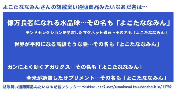 | 意味不明あだ名 | 『よこたななみんフォーエバー』 |