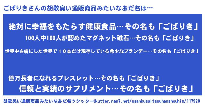 | 意味不明あだ名 | 『住所不定無職ごばりき(86歳)』 |