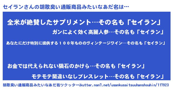 | 男性向けラノベタイトル風あだ名 | 『セイランに滅ぼされるだけの簡単なお仕事です』 |
