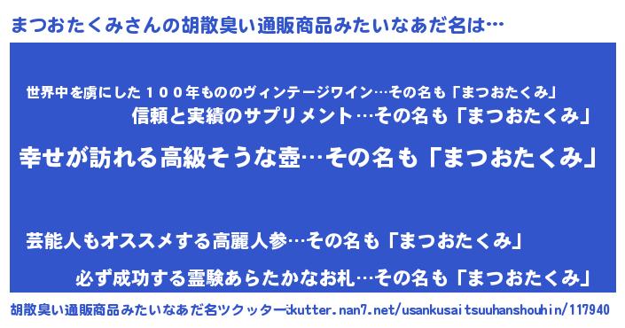 | 欧米人風あだ名 | 『まつおたくみクリステル』 |