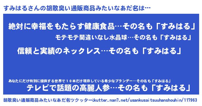 | ヘコむあだ名 | 『すみっぺ』『すみはる(笑)』 |