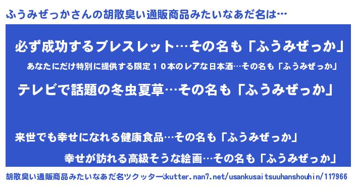 | 意味不明あだ名 | 『自称ふうみぜっか』 |