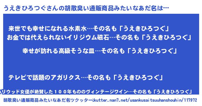 | 可愛いあだ名 | 『うえちー』『うえきひろつぐママ』 |