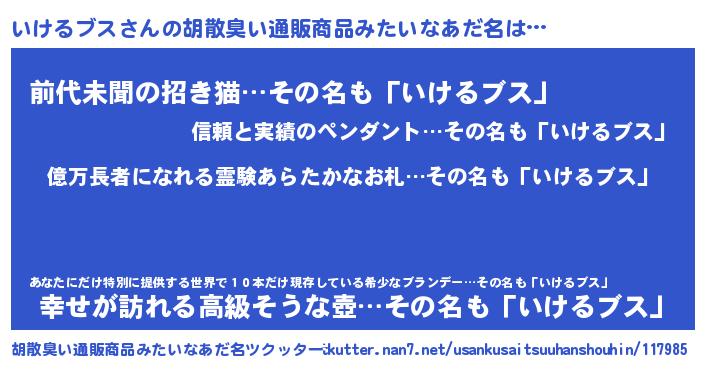 | 男性向けラノベタイトル風あだ名 | 『イケルブスアートオンライン』 |