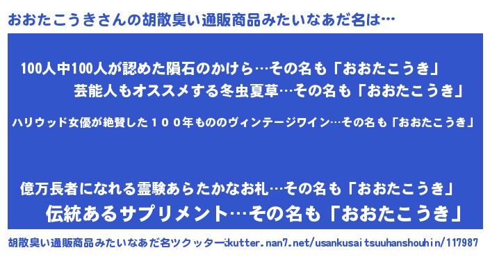 | 意味不明あだ名 | 『住所不定無職おおたこうき(2歳)』 |