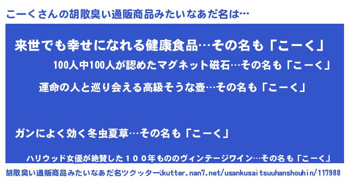 | 女子向けラノベタイトル風あだ名 | 『こーくの婚約者』 |