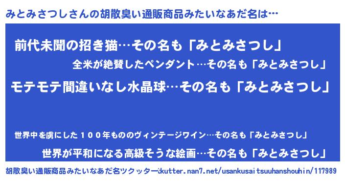| 男性向けラノベタイトル風あだ名 | 『みとみさつしの憂鬱』 |