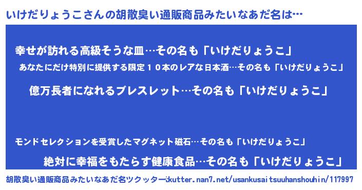 | ヘコむあだ名 | 『いけにー』『牛乳』『いけ太郎』 |
