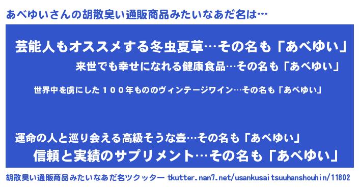 | ヘコむあだ名 | 『あべお』『あべゆい(震え声)』 |