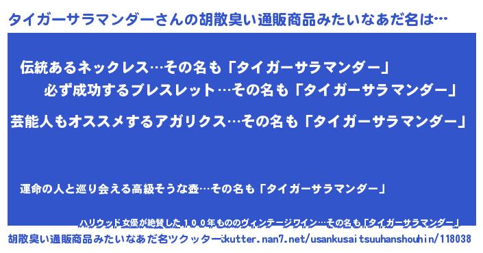 | 恥ずかしいあだ名 | 『タイガーサラマンダーデラックス』 |
