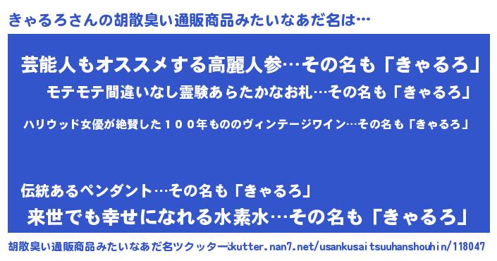 | 意味不明あだ名 | 『住所不定無職きゃるろ(13歳)』 |