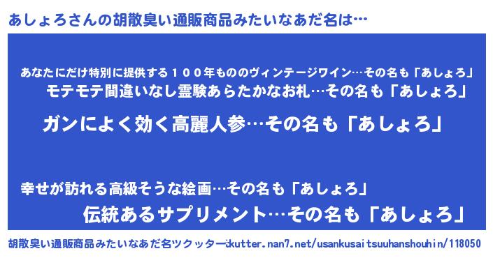 | 恥ずかしいあだ名 | 『アショロデラックス』『アシリンリン』 |