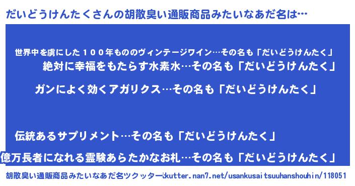 | ヘコむあだ名 | 『だいにゅー』『だいどうけんたく(小並感)』 |