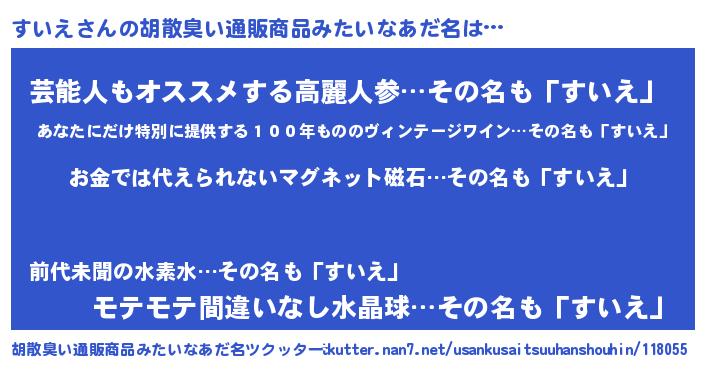 | ヘコむあだ名 | 『すいにー』『すいえ(苦笑)』 |