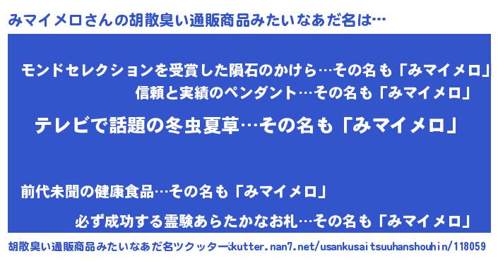 | 女子向けラノベタイトル風あだ名 | 『みマイメロアンティーク』 |
