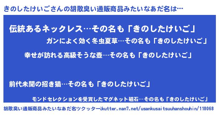 きのしたけいごさんの胡散臭い通販商品みたいなあだ名をツクッター!