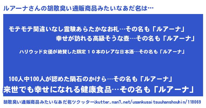 | ヘコむあだ名 | 『ルアにゅー』『ルアーナ(苦笑)』 |