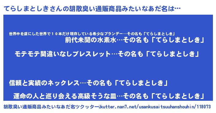 | 男性向けラノベタイトル風あだ名 | 『てらしまとしきの憂鬱』 |
