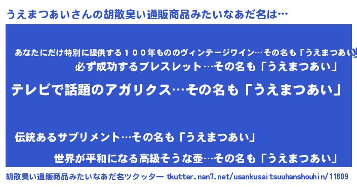 | 意味不明あだ名 | 『自称うえまつあい』 |