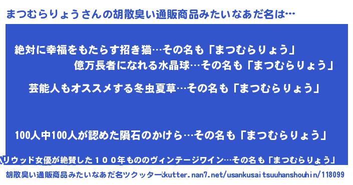 | 意味不明あだ名 | 『自称まつむらりょう』 |