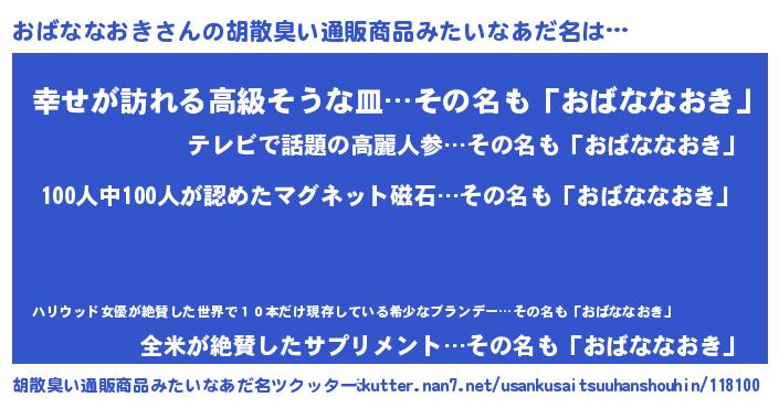 | 欧米人風あだ名 | 『アンジェラ・おばななおき』 |