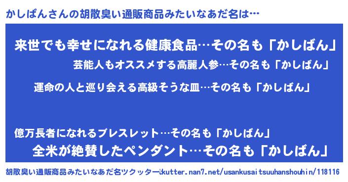 | 意味不明あだ名 | 『かしばんフォーエバー』『自称かしばん』 |
