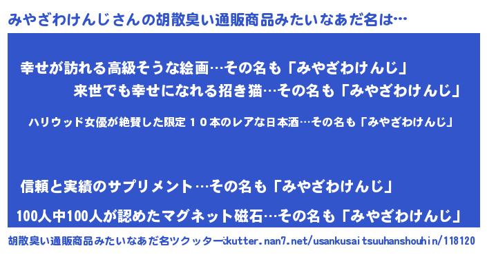 | 意味不明あだ名 | 『住所不定無職みやざわけんじ(47歳)』 |