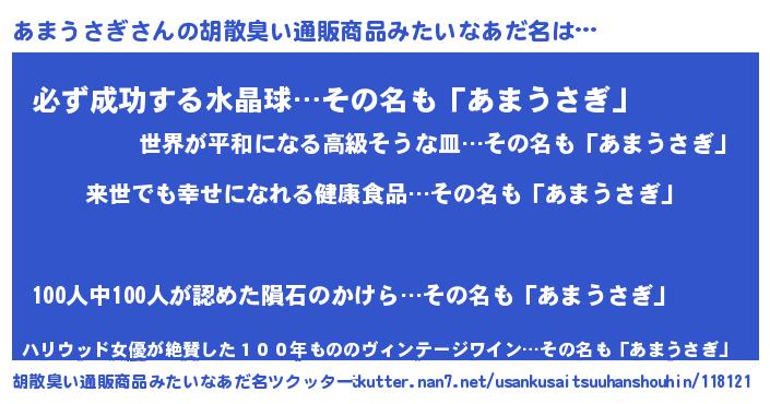| ヒーロー風カッコイイあだ名 | 『ネオアマウサギ』『スーパーアマウサギ』 |