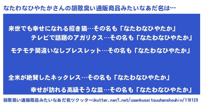 | ヘコむあだ名 | 『なたにー』『なたわなひやたか(笑)』 |