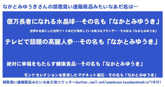 | 意味不明あだ名 | 『自称なかとみゆうき』 |