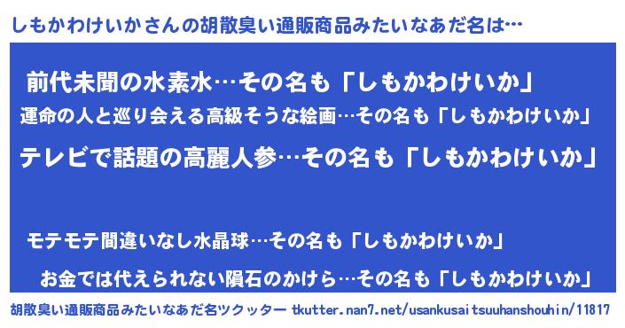 | 肩書あだ名 | 『しもかわけいか閣下』 |