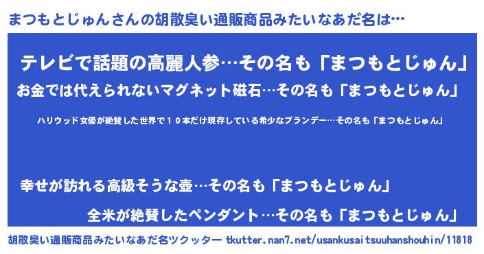 | 意味不明あだ名 | 『住所不定無職まつもとじゅん(74歳)』 |