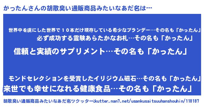 | 意味不明あだ名 | 『とにかく怪しいかったん』 |
