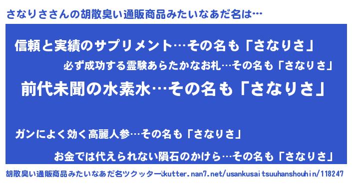 | 欧米人風あだ名 | 『さなりさ・ステッグマイヤー』 |