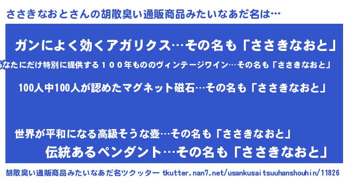 | ヘコむあだ名 | 『ささお』『牛乳』『ささにゅー』 |