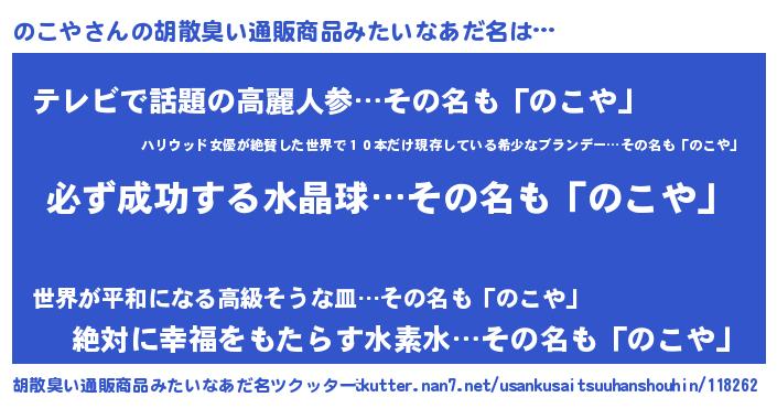 | ヒーロー風カッコイイあだ名 | 『スーパーノコヤ』『最強戦士ノコヤ』 |