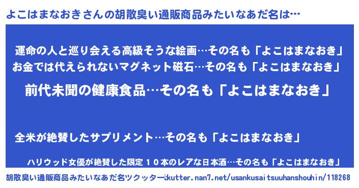 | ヘコむあだ名 | 『よこはまなおき(爆)』『なまこ酢』 |