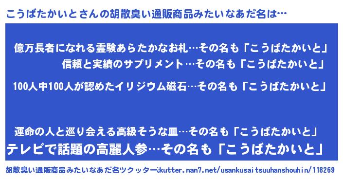 こうばたかいとさんの胡散臭い通販商品みたいなあだ名をツクッター!