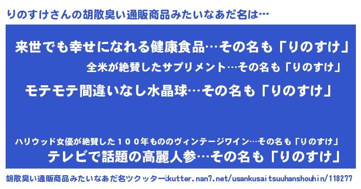 | 女子向けラノベタイトル風あだ名 | 『りのすけ姫と円卓の騎士』 |