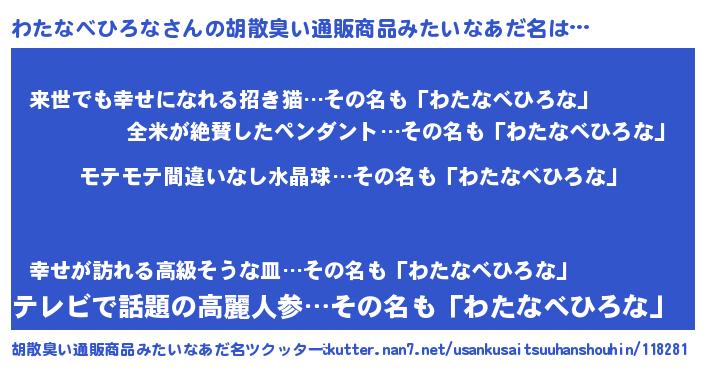| ヘコむあだ名 | 『わたにゅー』『わたなべひろな(爆)』 |