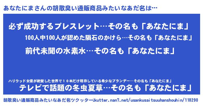 | 意味不明あだ名 | 『永久保存あなたにま』『自称あなたにま』 |