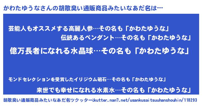 | ヘコむあだ名 | 『かわにゅー』『かわたゆうな(笑)』 |