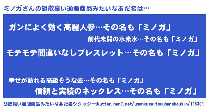 | ヒーロー風カッコイイあだ名 | 『スーパーミノガ』『超時空戦士ミノガ』 |