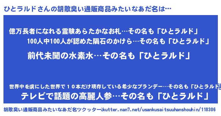 | ヘコむあだ名 | 『ひとラルド(震え声)』『ひともー』 |