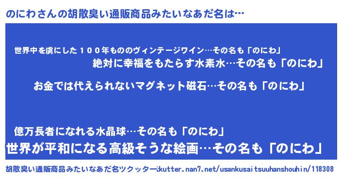 | ヘコむあだ名 | 『なまこ酢』『のにわ(笑)』 |