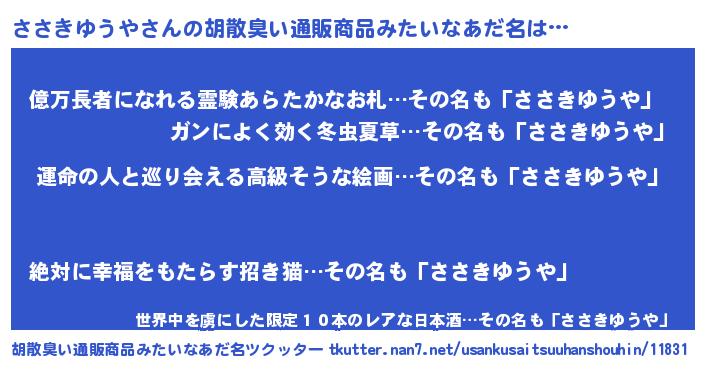 | 意味不明あだ名 | 『ささきゆうやフォーエバー』 |