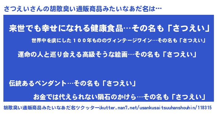 | 意味不明あだ名 | 『さつえいフォーエバー』 |
